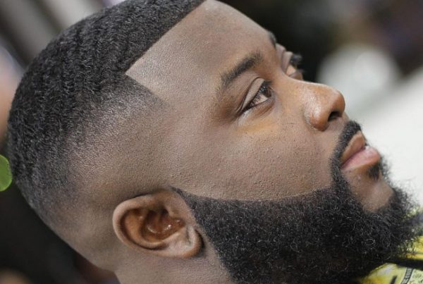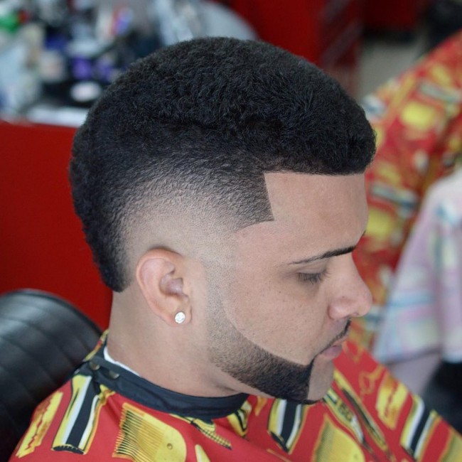 Dégradé Burst Fade + Fauxhawk + Barbe Déconnectée