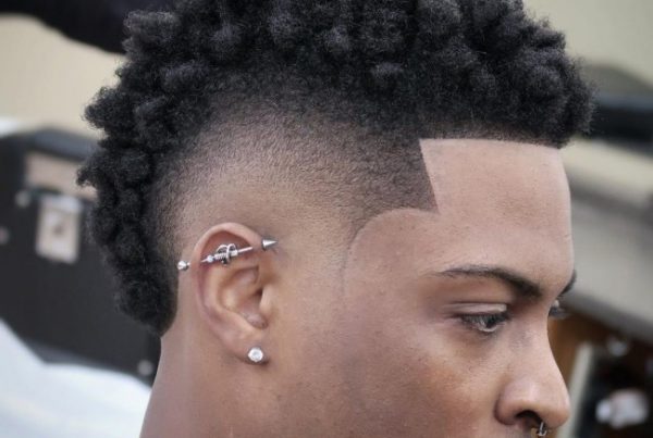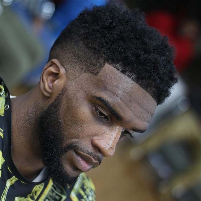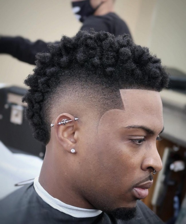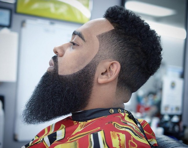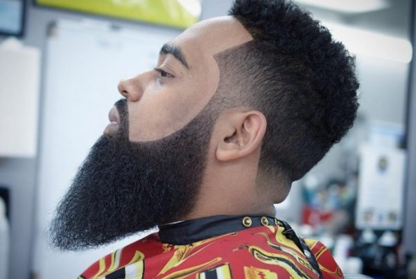 Dégradé Burst Fade + Fauxhawk + Barbe Déconnectée